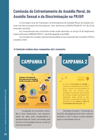 com compartilhamento de experiências sobre paternida- A comissão não recebeu representações/denúncias no período de novembro/2020 a
