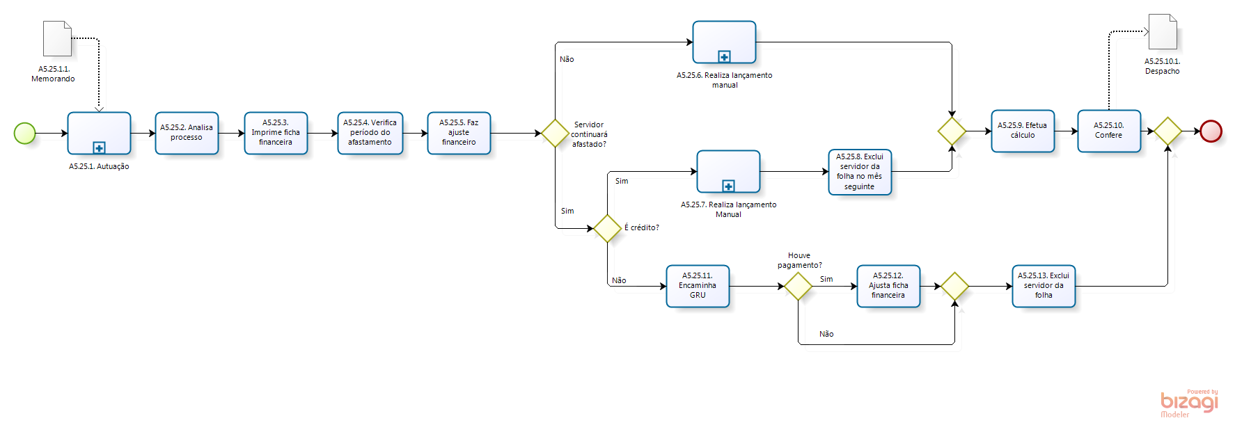 Obs. Incluir no procedimento administrativo aberto todos os documentos pertinentes como memorandos, atestados médicos, impressão da tela “afastamentos” do GPS, fichas financeiras, planilhas de cálculo, etc.