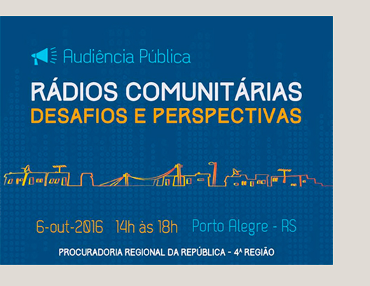 Dificuldades de outorga, cobertura restrita a, no máximo, mil metros, desvio de finalidade e choque de frequências. Essas são algumas questões enfrentadas por profissionais que trabalham com rádios comunitárias que foram debatidas na tarde desta quinta-feira, 6 de outubro, no auditório da Procuradoria Regional da República da 4ª Região (PRR4), em Porto Alegre. O evento, coordenado pelo Grupo de Trabalho Comunicação Social da Procuradoria Federal dos Direitos do Cidadão (PFDC), reuniu representantes de organizações da sociedade civil, do poder público e de entidades do setor para discutir desafios e as perspectivas no campo da radiodifusão comunitária.